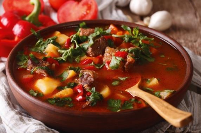 Traditional dishes such as the world-famous Goulash (gulyás stew or gulyás soup) feature prominently in Hungarian cuisine. Dishes are often flavored with paprika (ground red peppers), a Hungarian innovation. The paprika powder, obtained from a special type of pepper, is one of the most common spices used in typical Hungarian cuisine. Thick, heavy Hungarian sour cream called tejföl is often used to soften the dishes’ flavour. The famous Hungarian hot river fish soup called Fisherman’s soup or halászlé is usually a rich mixture of several kinds of poached fish.